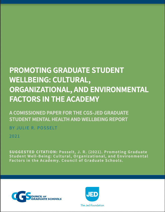 This resource synthesizes current knowledge about cultural, organizational, and environmental factors in higher education which are known to support or inhibit the wellbeing of graduate students.